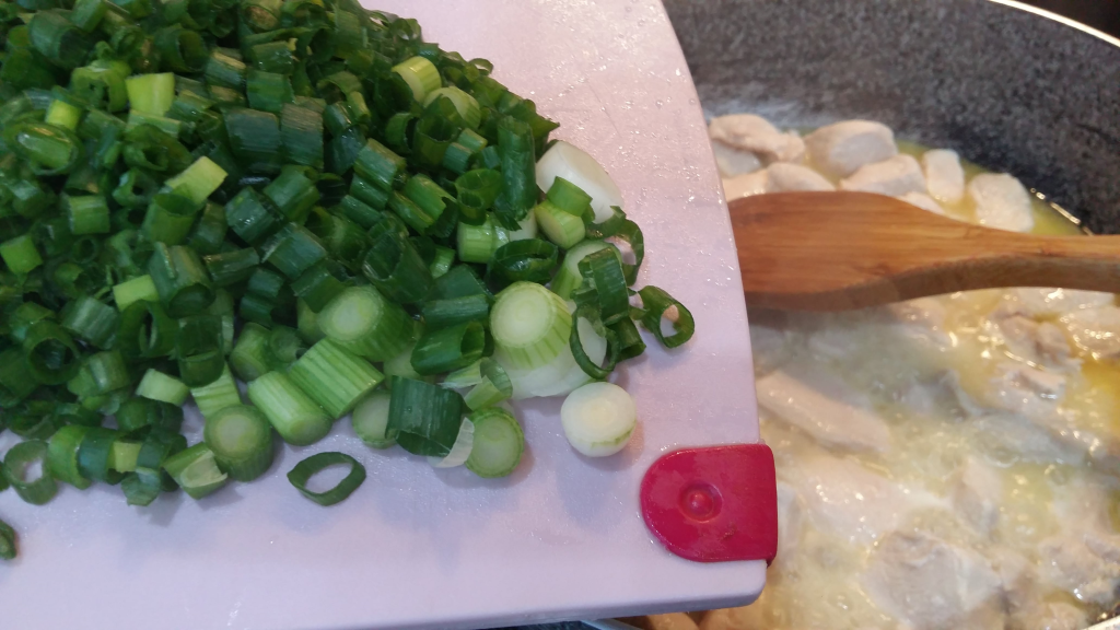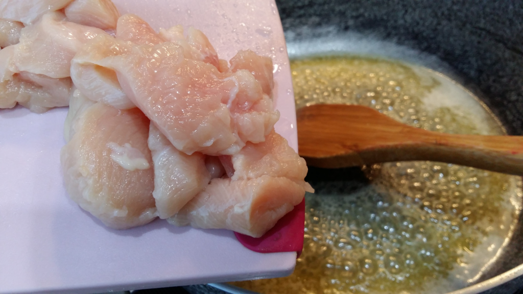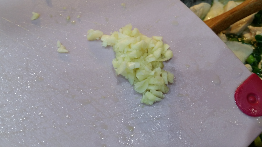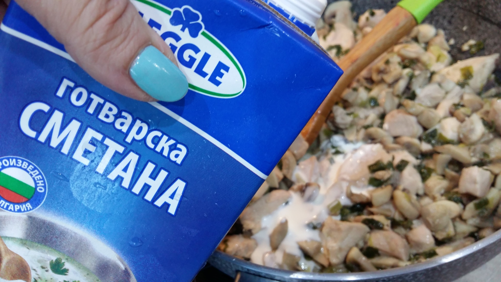 и чесън за около 3-4 минути да се задушат към пилешкото.