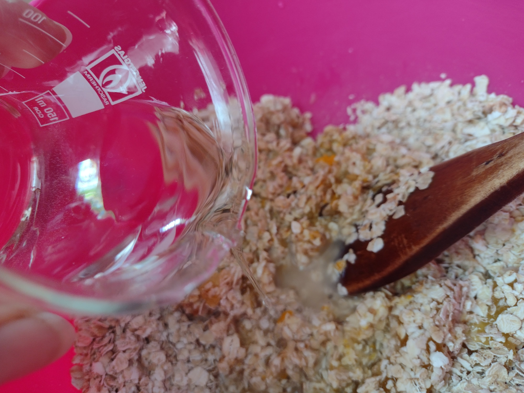 Започнете да добавяте постепенно топлата вода и бъркайте, докато се получи тесто.