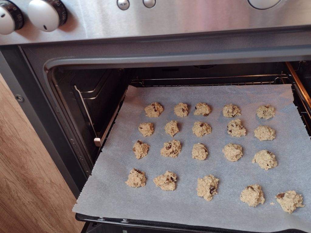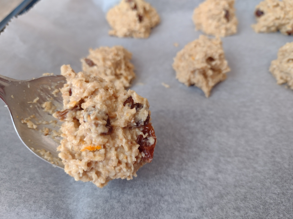 С помоща на супена лъжица слагайте от сместа в тава, застлана с хартия за печене.