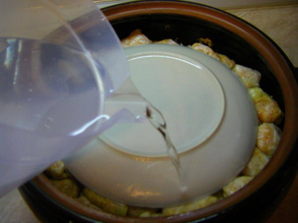 СЛАГАМЕ ЧИНИЯ ДА ПРИТИСКА САРМИТЕ И ЗАЛИВАМЕ С ВРЯЩА ВОДА