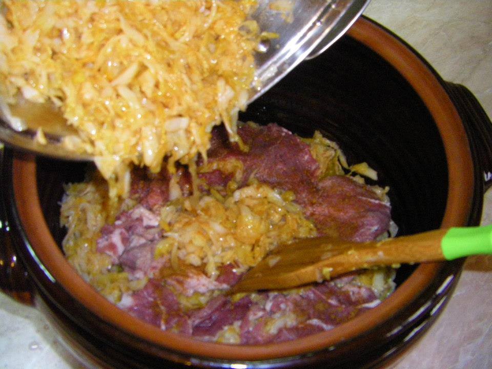 ПОКРИВАМЕ С ОСТАНАЛАТА ЧАСТ ОТ ЗЕЛЕТО СВИНСКОТО МЕСО