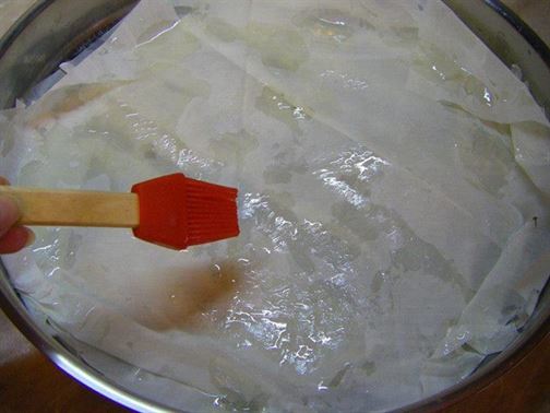 В НАМАСЛЕНА ТАВИЧКА С РАЗМЕР ОТ 36 СМ НАРЕДЕТЕ ТРИ КОРИ, КАТО ВСЯКА КОРА НАМАЗВАТЕ С МАЛКО ОЛИО. ПРИГОТВЕТЕ СИ ПЛЪНКАТА, КАТО СМЕСИТЕ СИРЕНЕТО, ЯЙЦАТА, КИСЕЛОТО МЛЯКО И БАКПУЛВЕРА. РАЗПРЕДЕЛЕТЕ ВЪРХУ ВСЯКА ТРЕТА КОРА ЧАСТ ОТ ГОТОВАТА ПЛЪНКА (КАКТО МОЖЕ ДА ВИДИТЕ ОТ СНИМКИТЕ "СТЪПКА ПО СТЪПКА"). ПО СЪЩИЯ НАЧИН ПОДРЕДЕТЕ ДО КРАЙ БАНИЦАТА, КАТО ЗАВЪРШВАТЕ С КОРИ. НАРЕЖЕТЕ БАНИЦАТА ПО ВАШЕ ЖЕЛАНИЕ, ПОЛЕЙТЕ Я С ГОРЕЩОТО МАСЛО. РАЗБИЙТЕ ЯЙЦАТА, КАТО ГИ СМЕСИТЕ С ПРЯСНОТО МЛЯКО И ЗАЛЕЙТЕ С ГОТОВАТА СМЕС БАНИЦАТА. ПЕЧЕТЕ НА УМЕРЕНА ФУРНА НА 180-200 ГРАДУСА ДО ЗЛАТИСТ ЦВЯТ ЗА ОКОЛО 30-40 МИНУТИ. БАНИЦАТА СТАВА МНОГО ПУХКАВА И ВКУСНА. ПРОБВАЙТЕ И СПОДЕЛЕТЕ. ДА ВИ Е СЛАДКО.