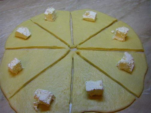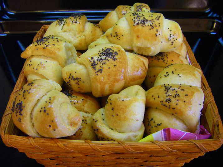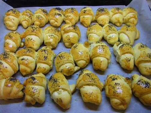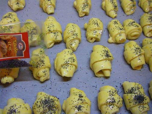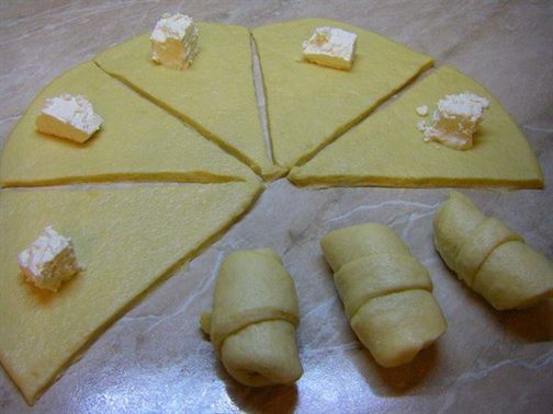 ЗАТОПЛЕТЕ ЛЕКО МЛЯКОТО, ПРИБАВЕТЕ КЪМ НЕГО МАЯТА И ЗАХАРТА, РАЗБЪРКАЙТЕ И ОСТАВЕТЕ ДА УДВОИ ОБЕМА СИ НА ТОПЛО.В ПОДХОДЯЩА ДЪЛБОКА КУПА ИЗСИПЕТЕ ЧАСТ ОТ БРАШНОТО И ПРИБАВЕТЕ ЯЙЦАТА, СОЛТА, МАРГАРИНА, ВТАСАЛАТА МАЯ И ОМЕСЕТЕ ГЛАДКО ТЕСТО, КАТО ПРИБАВЯТЕ ПОСТЕПЕННО ДРУГАТА ЧАСТ ОТ БРАШНОТО. ОСТАВЕТЕ ЗА 30 МИНУТИ ДА УДВОИ ОБЕМА СИ НА ТОПЛО.ПОСЛЕ РАЗДЕЛЕТЕ НА НЯКОЛКО ТОПКИ (КАКТО МОЖЕ ДА ВИДИТЕ ОТ СНИМКИТЕ "СТЪПКА ПО СТЪПКА") ОСТАВЕТЕ ДА ВТАСА ОТНОВО ЗА 10 МИНУТИ.ВСЯКА ТОПКА Я РАЗТОЧВАМЕ НА КРЪГЛА КОРА И РЕЖЕМ НА ТРИЪГЪЛНИЦИ. ПОСТАВЯМЕ НА ВСЯКО ТРИЪГЪЛНИЧЕ ПАРЧЕНЦЕ СИРЕНЕ И НАВИВАМЕ НА КИФЛИЧКИ.ПОДРЕЖДАМЕ ГИ В ПОДХОДЯЩА ТАВА ЗАСТЛАНА С ХАРТИЯ ЗА ПЕЧЕНЕ, НАМАЗВАМЕ ГИ С РАЗБИТ ЖЪЛТЪК И ГИ ПОРЪСВАМЕ С МАК.ПЕЧЕМ В ПРЕДВАРИТЕЛНО ЗАГРЯТА ФУРНА НА 180 ГРАДУСА ДО ЗЛАТИСТ ЦВЯТ. СТАВАТ ПУХКАВИ И МНОГО ВКУСНИ. ПРОБВАЙТЕ И СПОДЕЛЕТЕ. ДА ВИ Е СЛАДКО.
