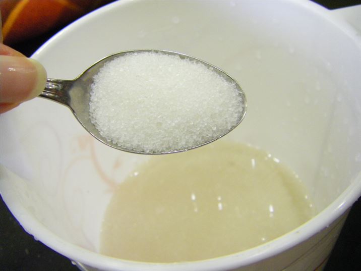 РАЗТВОРЕТЕ МАЯТА В 250 МЛ ТОПЛА ВОДА И ПРИБАВЕТЕ ЗАХАРТА ЗА ДА СЕ АКТИВИРА ВТАСВАНЕТО.