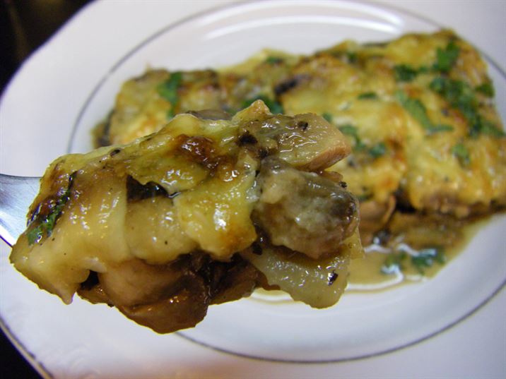 ПАТЛАДЖАНИТЕ И ТИКВИЧКИТЕ СЕ ОБЕЛВАТ. НАРЯЗВАТ СЕ ПАТЛАДЖАНИТЕ НА ТЪНКИ ФИЛИЙКИ И СЕ ПОСТАВЯТ В ПОДСОЛЕНА ВОДА ЗА ОКОЛО 30 МИНУТИ, ЗА ДА СЕ ОТЕЧЕ ГОРЧИВИЯ СОК. СЛЕД ТОВА СЕ ИЗМИВАТ И ПОДСУШАВАТ С ДОМАКИНСКА ХАРТИЯ. НАМАЗВАТ СЕ С ОЛИО И РИГАН. НАРЯЗВАТ СЕ ПО СЪЩИЯ НАЧИН НА ТЪНКИ ФИЛИЙКИ ТИКВИЧКИТЕ (КАКТО МОЖЕ ДА ВИДИТЕ ОТ СНИМКИТЕ "СТЪПКА ПО СТЪПКА") И СЪЩО ГИ НАМАЗВАТЕ С ОЛИО И РИГАН. ИЗПИЧАТЕ ПАТЛАДЖАНИТЕ И ТИКВИЧКИТЕ НА СКАРА ИЛИ В СУХ ТЕФЛОНОВ ТИГАН. ПОЧИСТВАТЕ ГЪБИТЕ И ГИ РЕЖЕТЕ НА ЕДРО. В НАМАЗАНА С МАЗНИНА ТАВИЧКА НАРЕДЕТЕ ПАТЛАДЖАНИТЕ ВЪРХУ ТЯХ ГЪБИТЕ, НАРЯЗАНИТЕ НА ФИЛИЙКИ ЧЕСЪН, ПОРЪСЕТЕ С МАЛКО ОЛИО, ПОЛОВИНАТА ОТ ЕДРО НАСТЪРГАНИЯ КАШКАВАЛ И МАЛКО СЪС СИТНО НАРЯЗАНИЯ МАГДАНОЗ И ПОДРЕДЕТЕ ОТГОРЕ ТИКВИЧКИТЕ. ЗАЛЕЙТЕ С 100 МЛ ПОДСОЛЕНА ВОДА. ЗАВИЙТЕ С ФОЛИО И ПЕЧЕТЕ НА 180-200 ГРАДУСА ЗА 35-40 МИНУТИ, КАТО ПОСЛЕДНИТЕ НЯКОЛКО МИНУТИ МАХАТЕ ФОЛИОТО ПОРЪСВАТЕ ЯСТИЕТО С ОСТАНАЛАТА ПОЛОВИНА ОТ ЕДРО НАСТЪРГАНИЯ КАШКАВАЛ И ЗАПИЧАТЕ ДО ЗЛАТИСТА КОРИЧКА. ПРЕДИ СЕРВИРАНЕ ПОЖЕЛАНИЕ МОЖЕ ДА СЕ ПОРЪСИ СЪС СИТНО НАРЯЗАН МАГДАНОЗ. ЯСТИЕТО Е С НЕВЕРОЯТЕН ВКУС И АРОМАТ. ПРОБВАЙТЕ И СПОДЕЛЕТЕ. ДА ВИ Е СЛАДКО.