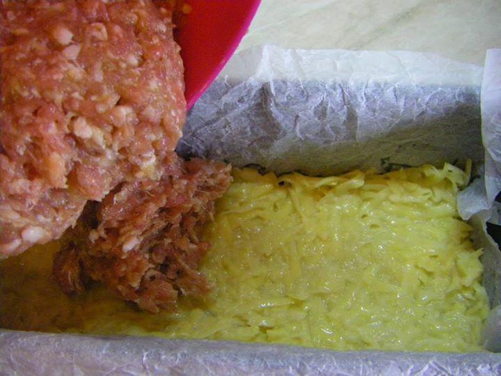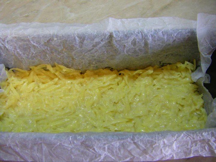 В ПОДХОДЯЩА ДЪЛБОКА КУПА СЛАГАМЕ КАЙМАТА, ЕДНО ЯЙЦЕ, ПРЕДВАРИТЕЛНО НАСТЪРГАНИЯ КРОМИД ЛУК И РАЗБЪРКВАМЕ ВСИЧКО. ИЗЧИСТЕНИТЕ И ОБЕЛЕНИ КАРТОФИ НАСТЪРГВАМЕ НА ЕДРО И ИЗСТИСКВАМЕ СОКА ИМ. СЛАГАМЕ ГИ В СЪД ЗАЕДНО С ДРУГОТО ЯЙЦЕ, БРАШНО, СОЛ НА ВКУС И РАЗБЪРКВАМЕ ДОБРЕ. ИЗРЯЗВАМЕ ЛИСТ ХАРТИЯ ЗА ПЕЧЕНЕ ПО ПРОДЪЛГОВАТА ФОРМА ЗА КЕКС. НАМАЗВАМЕ ФОРМАТА С ОЛИОТО И ПОСТАВЯМЕ В НЕЯ ОРИЗОВАТА ХАРТИЯ. ПОЛОВИНАТА КАРТОФЕНА СМЕС СИПВАМЕ ВЪВ ФОРМАТА (КАКТО МОЖЕ ДА ВИДИТЕ ОТ СНИМКИТЕ "СТЪПКА ПО СТЪПКА"), А ОТГОРЕ КАЙМАТА И СЛЕД ТОВА ДРУГАТА ПОЛОВИНА ОТ КАРТОФЕНАТА СМЕС. СЛАГАМЕ В ПРЕДВАРИТЕЛНО ЗАГРЯТА ФУРНА НА 180 ГРАДУСА ДА СЕ ПЕЧЕ ЗА ОКОЛО 45-50 МИНУТИ. ИЗВАЖДАМЕ ГОТОВОТО РУЛО ОТ ФОРМАТА И МАХАМЕ ХАРТИЯТА. ПРЕДИ ДА СЕРВИРАМЕ ЯСТИЕТО, ОХЛАДЕНО ГО НАРЯЗВАМЕ НА ПАРЧЕТА. СТАВА ЛЕСНО, ЕФЕКТНО, БЪРЗО И МНОГО ВКУСНО. ПРОБВАЙТЕ И СПОДЕЛЕТЕ. ДА ВИ Е СЛАДКО