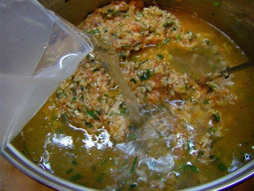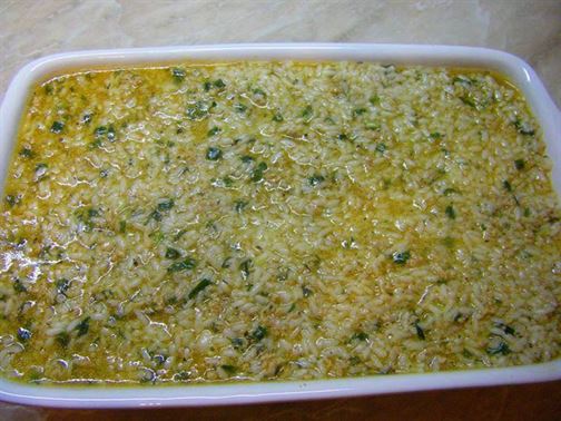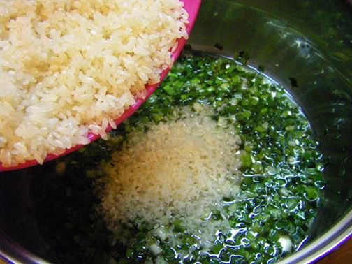 Долейте около 1,200 литра гореща вода и оставете сместа да къкри, докато оризът набъбне.