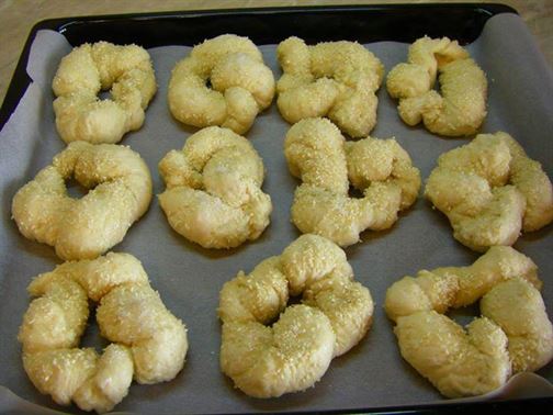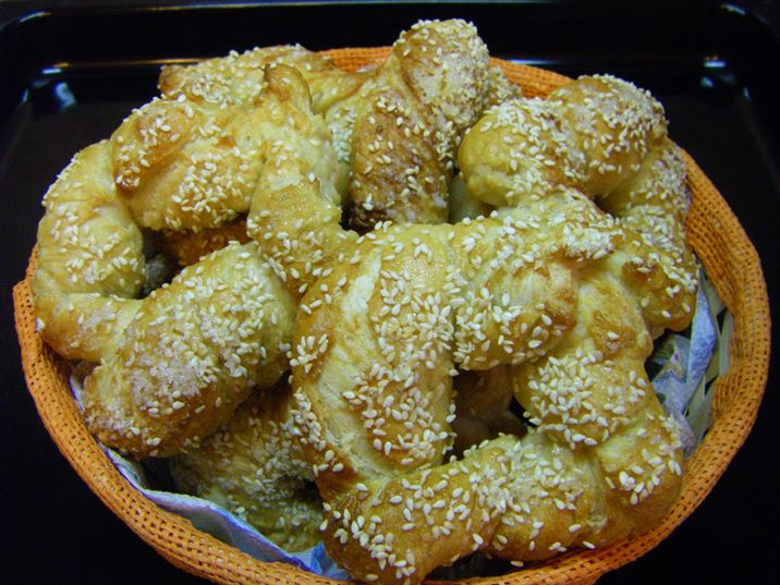 ЗА 13 БРОЯ: 850 ГР БРАШНО,30 ГР ПРЯСНА МАЯ,1 РАВНА ЧАЕНА ЛЪЖИЦА СОЛ,1 ЧАЕНА ЧАША ГЛЮКОЗА,ОКОЛО 50-60 ГР СУСАМ,ЗАХАР ЗА РЪСЕНЕ.
