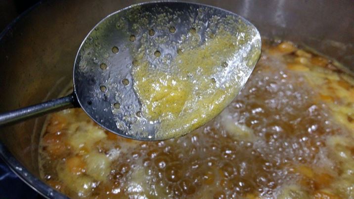 По време на варенето внимателно се отстранява образувалата се пяна (бих казала, че е сравнително малко от някой други плодове)