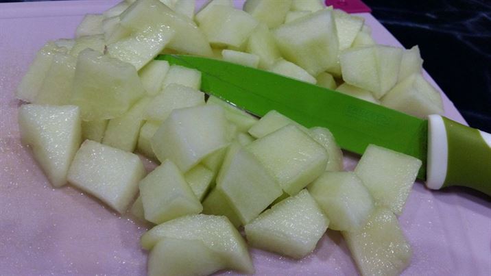 Измива се, изчиства се от семената, обелва се и се нарязва на парченца.