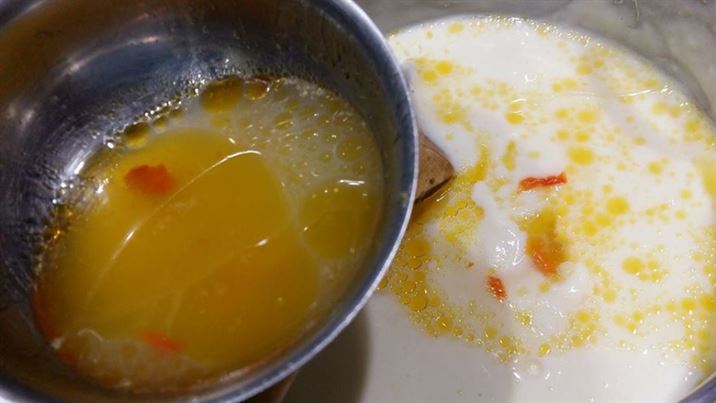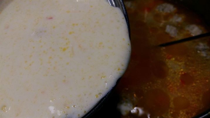 Щом стане хомогенна смес прибавяме към останалата част от супата. Това е така наречената калена застройка.
