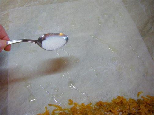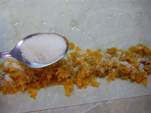 Добавете 1 с.л. захар върху тиквата и още 1 с.л. захар, разпределена по цялата кора.