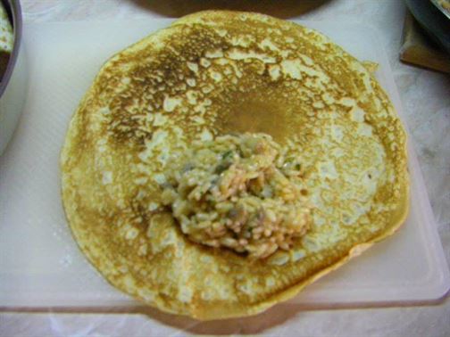 ОТ ЯЙЦАТА,МЛЯКОТО,СОДАТА И БРАШНОТО СЕ ПРИГОТВЯ ГЪСТА КАТО БОЗА КАША.ОТ НЕЯ В ГОЛЯМ ТИГАН СЪС ЗАГРЯТО ОЛИО СЕ ИЗПЪРЖВАТ СЕДЕМ ИЛИ ОСЕМ ПАЛАЧИНКИ. ЗА ПЛЪНКАТА ГЪБИТЕ СЕ ПОЧИСТВАТ,НАРЯЗВАТ СЕ НА СИТНО И СЕ ИЗПЪРЖВАТ ЗАЕДНО СЪС СИТНО НАРЯЗАНИЯ КРОМИД В ОСТАНАЛОТО ОЛИО. ПРИБАВЯ СЕ ОРИЗЪТ,НАЛИВА СЕ ДВЕ И ПОЛОВИНА ЧАЕНИ ЧАШИ ВОДА,ПОРЪСВА СЕ СЪС СОЛ И СЕ ОСТАВЯ ДА ВРИ НА ТИХ ОГЪН. ЩОМ ТОЙ ПОПИЕ ЦЯЛАТА ТЕЧНОСТ,СЕ СВАЛЯ ОТ ОГЪНЯ,ПОДПРАВЯ СЕ С ЧЕРВЕН ПИПЕР И С НАРЯЗАНИТЕ НА СИТНО КОПЪР И МАГДАНОЗ. ВЪВ ВСЯКА ПАЛАЧИНКА СЕ СЛАГА ПО МАЛКО ОТ ТАКА ПРИГОТВЕНАТА ПЛЪНКА И СЕ СВИВА КАТО САРМА. САРМИТЕ СЕ НАРЕЖДАТ В ЛЕКО НАМАСЛЕНА ТАВИЧКА,ЗАЛИВАТ СЕ С ТОПЪЛ ГЪБЕН БУЛЪОН И РАЗТОПЕНО МАСЛО И СЕ СЛАГАТ ДА СЕ ПЕКАТ В УМЕРЕНА ФУРНА. ЯЙЦАТА СЕ РАЗБИВАТ С МЛЯКОТО И СОЛТА И ЩОМ САРМИТЕ СЕ ЗАЧЕРВЯТ,СЕ ПОЛИВАТ С ТАКА ПРИГОТВЕНАТА ЗАЛИВКА.ВРЪЩАТ СЕ ВЪВ ФУРНАТА КОЛКОТО ЗАЛИВКАТА ДА СЕ СТЕГНЕ И ЗАЧЕРВИ.ДРОБ САРМАТА СТАВА НЕВЕРОЯТНО ВКУСНА.ПРОБВАЙТЕ И СПОДЕЛЕТЕ.ДА ВИ Е СЛАДКО.