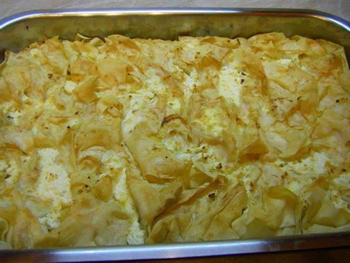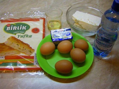 1 пакет турски кори (може и с други кори за баница),125 гр масло,5 яйца,300 мл газирана вода,400 гр сирене,около 80-100 мл олио
