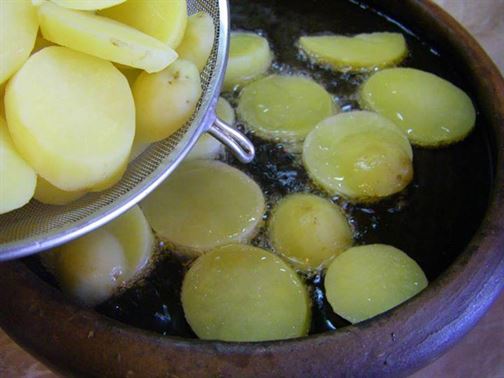 ОБЕЛЕТЕ И НАРЕЖЕТЕ НА ФИЛИЙКИ КАРТОФИТЕ, НО НЕ МНОГО ТЪНКИ. В ПОДХОДЯЩА ТЕНДЖЕРА СИПЕТЕ ДВА ЛИТРА ВОДА И СЛЕД КАТО ЗАВРИ ПРИБАВЕТЕ КАРТОФИТЕ ЗА ОКОЛО 5-6 МИНУТИ ДА ПОВРАТ, ЗА ДА СЕ БЛАНШИРАТ. ОТЦЕДЕТЕ ГИ. НАКИСНЕТЕ ГИ В БИРАТА ЗА ПОЛОВИН ЧАС И СЛЕД ТОВА ГИ ОТЦЕДЕТЕ В ГЕВГИР ЗА ОКОЛО 20 МИНУТИ. ЗАГРЕЙТЕ САЧА, КАТО ГО СЛОЖИТЕ НА СТУДЕН КОТЛОН И ТОГАВА ЗАПОЧНЕТЕ ПОСТЕПЕННО ЗАГРЯВАНЕТО. ИЗСИПЕТЕ ОЛИОТО И СЛОЖЕТЕ КАРТОФИТЕ ДА СЕ ЗАПЪРЖАТ (КАКТО МОЖЕ ДА ВИДИТЕ ОТ СНИМКИТЕ "СТЪПКА ПО СТЪПКА") ДОКАТО НАПРАВЯТ ЗЛАТИСТА КОРИЧКА, КАТО РАЗБЪРКВАТЕ ВНИМАТЕЛНО. КЪМ КРАЯ ПРИБАВЕТЕ ПОДПРАВКИТЕ, РАЗБЪРКАЙТЕ, ПОРЪСЕТЕ С ГАЛЕТАТА И МАХНЕТЕ ОТ ОГЪНЯ. КАРТОФКИТЕ СА С НЕВЕРОЯТЕН ВКУС И АРОМАТ. ПРОБВАЙТЕ И СПОДЕЛЕТЕ. ДА ВИ Е СЛАДКО.